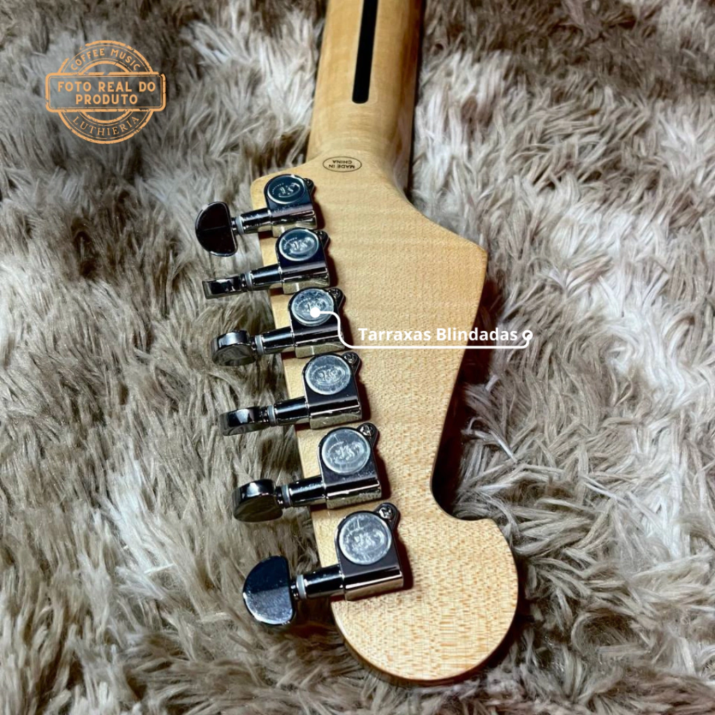 A guitarra SX SST Swamp Ash conta com 21 trastes, corpo em Swamp Ash, braço em Maple, escala em Rosewood, 3 singles, tremolo standard, 2 controles de tonalidade, 1 volume, chave de 5 posições, marcação dot, ferragens cromadas e chave para regulagem do tensor/ponte.