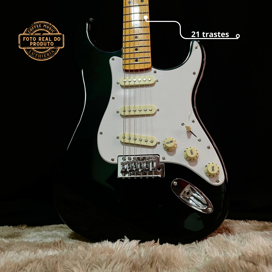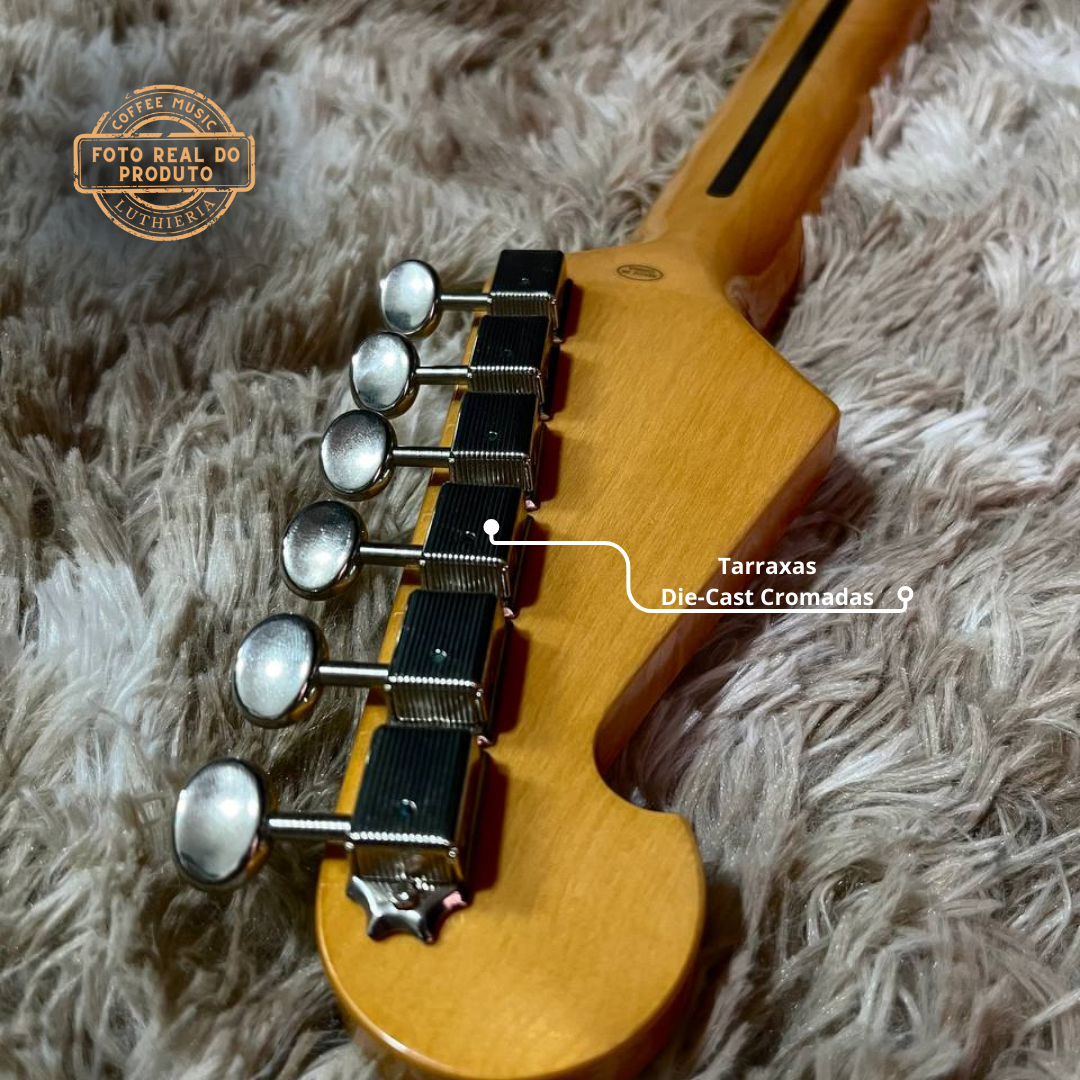 A guitarra SX SST conta com 21 trastes, corpo em basswood, braço em maple, escala em maple, 3 singles, tremolo standard, 2 controles de tonalidade, 1 volume, chave de 5 posições, marcação dot, ferragens cromadas, acompanha Gig Bag de nylon e chave para regulagem do tensor/ponte.